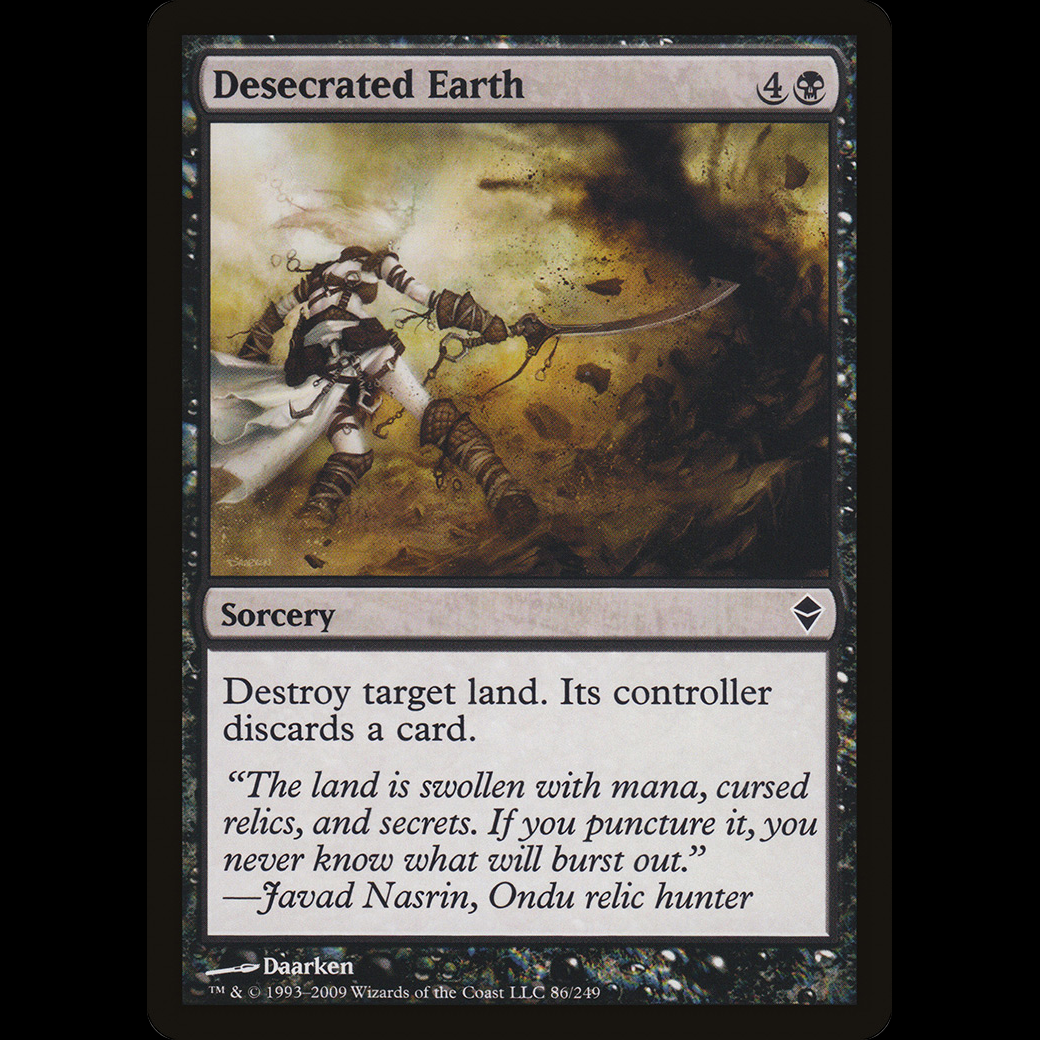 MTG Desecrated Earth ZendikarDestroy target land. Its controller discards a card.