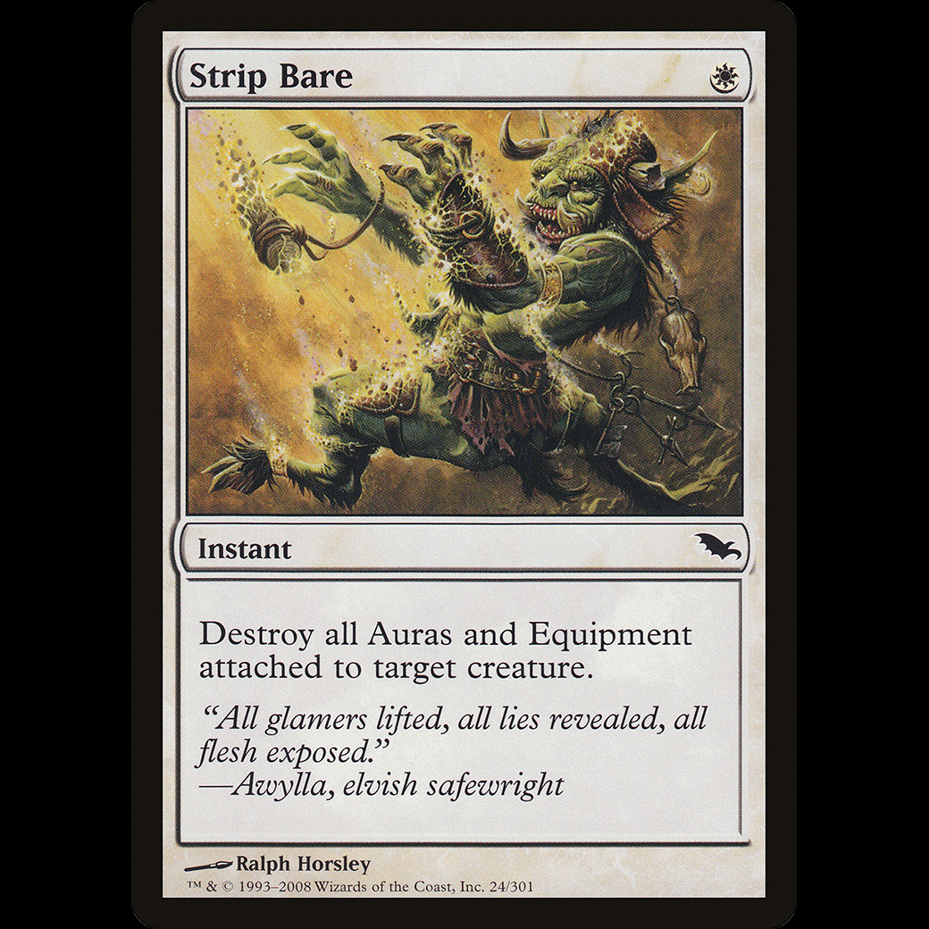 MTG Desnudar (Strip Bare) ShadowmoorDestroy all Auras and Equipment attached to target creature.