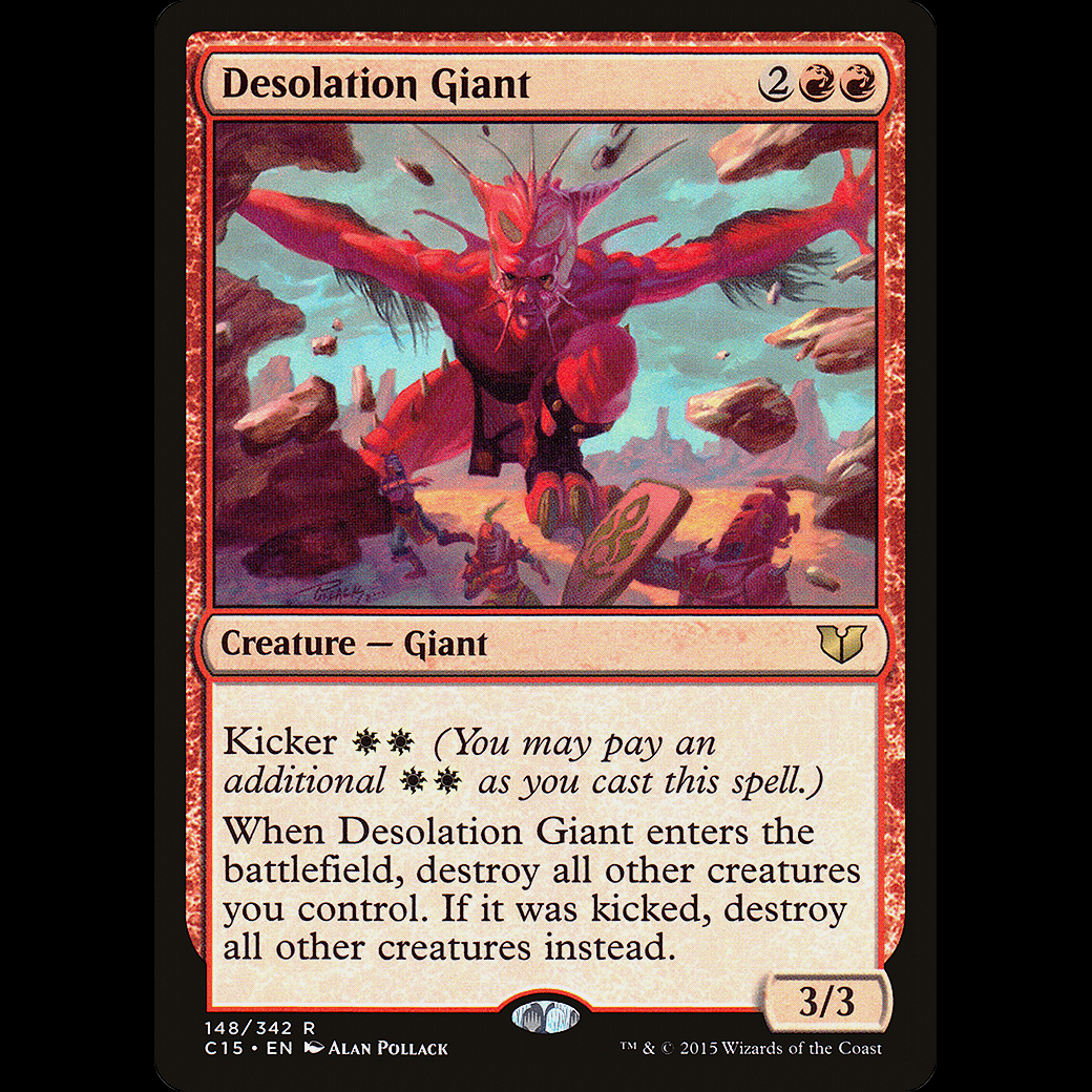 When Desolation Giant enters, destroy all other creatures you control. If it was kicked, destroy all other creatures instead.