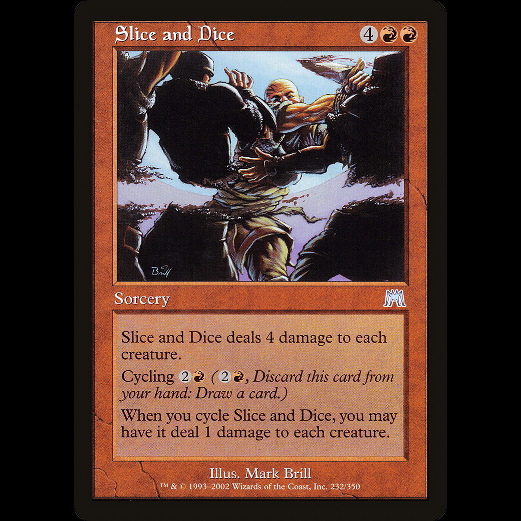When you cycle Slice and Dice, you may have it deal 1 damage to each creature.