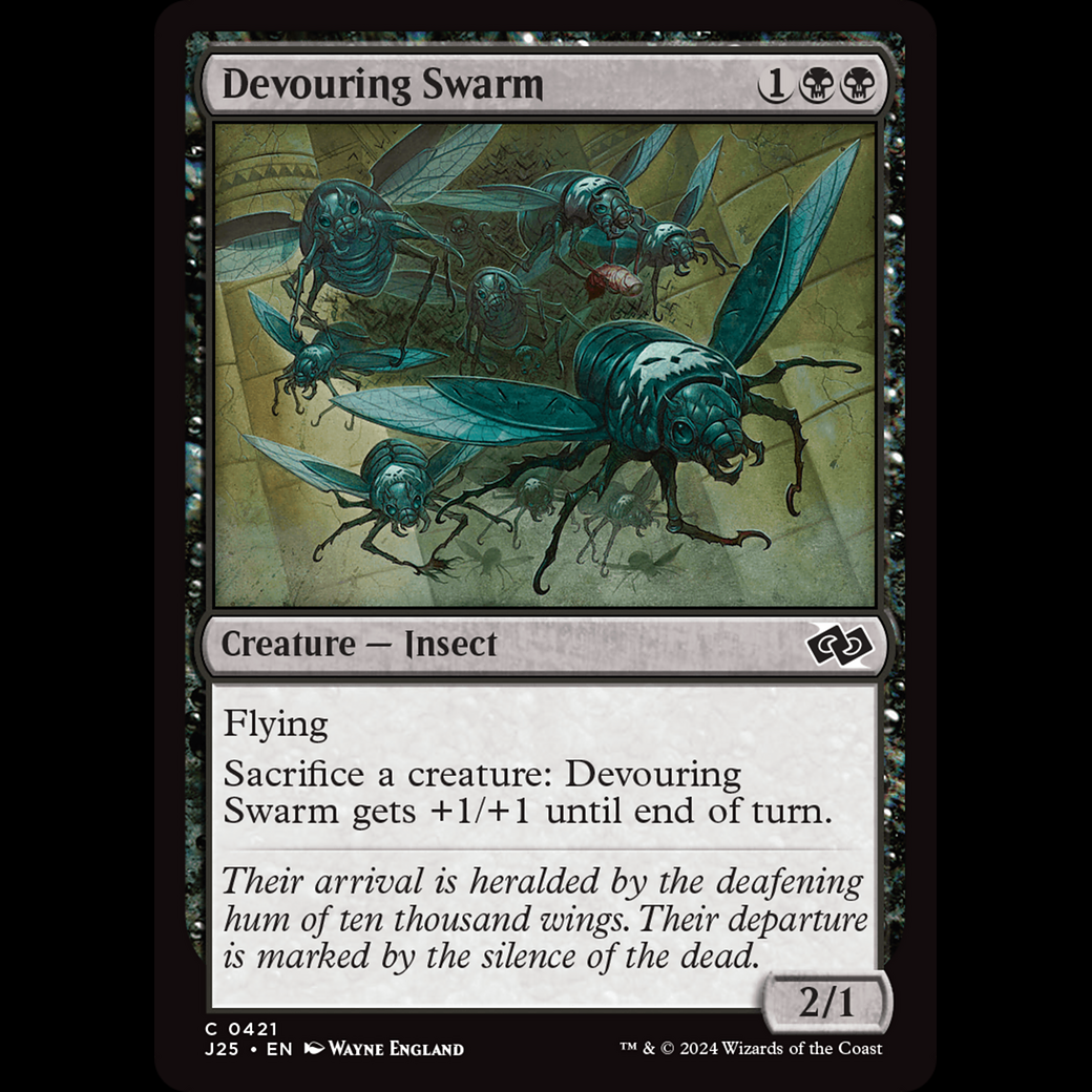 MTG Devouring Swarm Foundations Jumpstart j25#421 Flying Sacrifice a creature: Devouring Swarm gets +1/+1 until end of turn.
