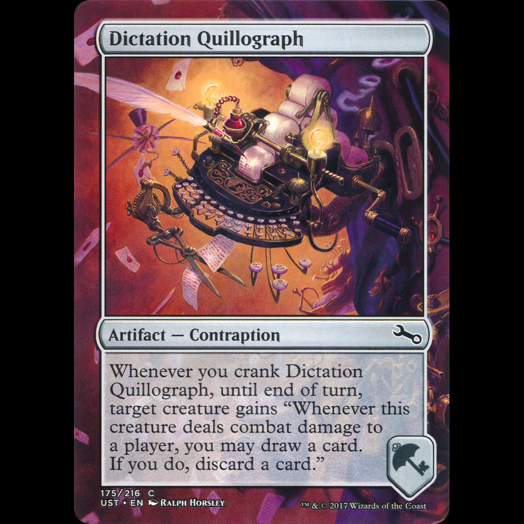Whenever you crank this Contraption, until end of turn, target creature gains "Whenever this creature deals combat damage to a player, you may draw a card. If you do, discard a card."
