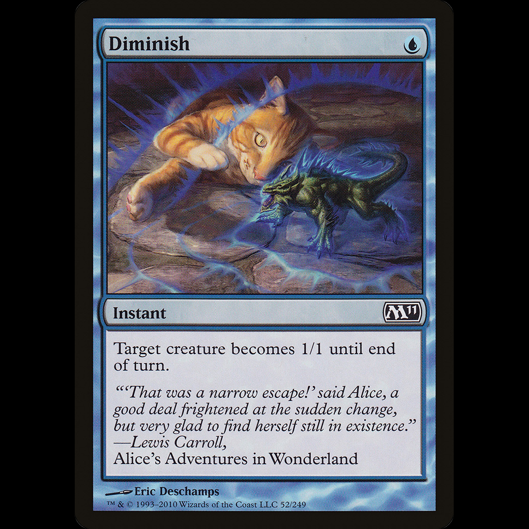 MTG Diminish Magic 2011Target creature has base power and toughness 1/1 until end of turn.