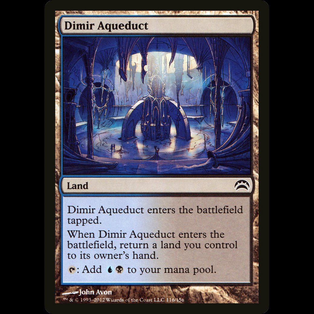 When Dimir Aqueduct enters the battlefield, return a land you control to its owner's hand.
