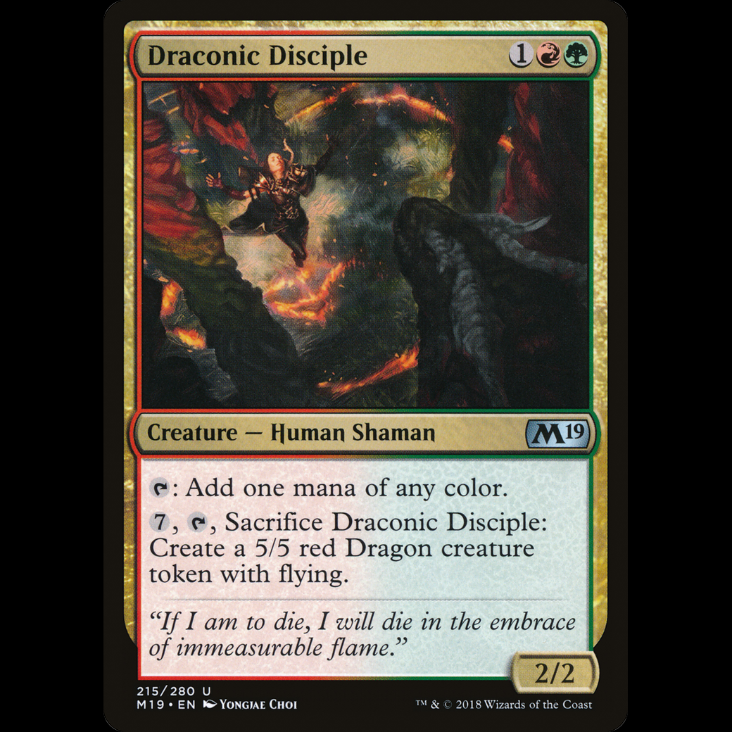 , , Sacrifice Draconic Disciple: Create a 5/5 red Dragon creature token with flying.