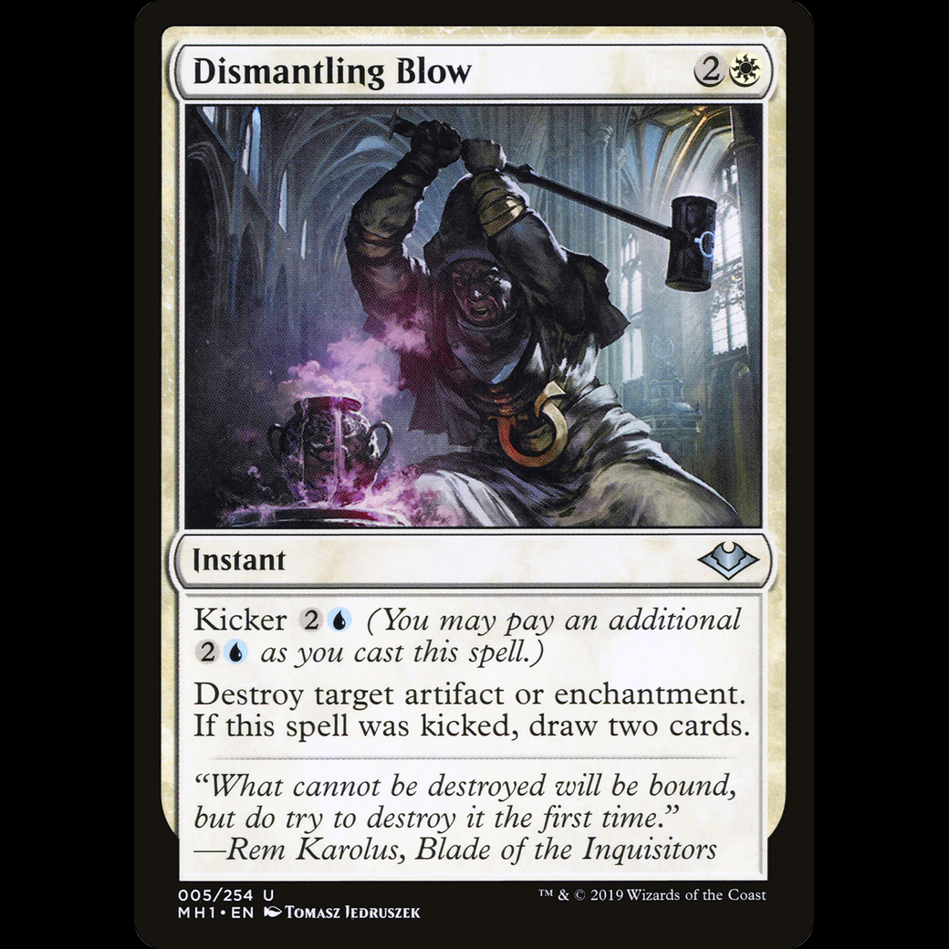 Destroy target artifact or enchantment. If this spell was kicked, draw two cards.