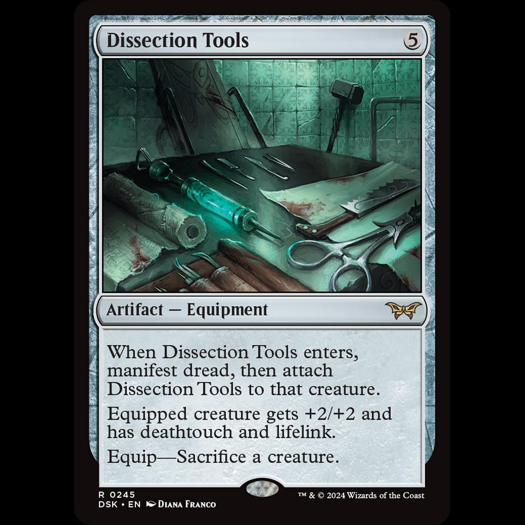 When Dissection Tools enters, manifest dread, then attach Dissection Tools to that creature.