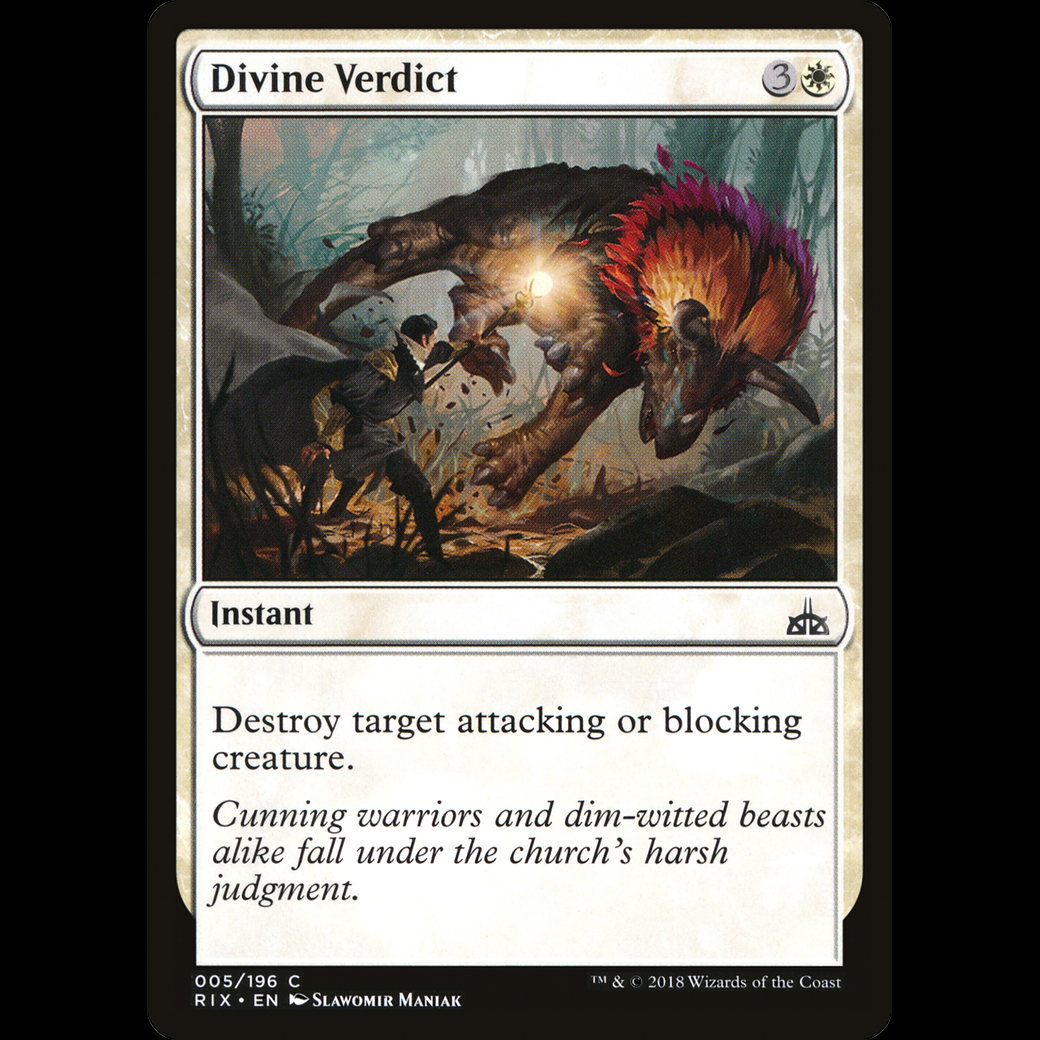 MTG Divine Verdict Rivals of Ixalan rix#5Destroy target attacking or blocking creature.