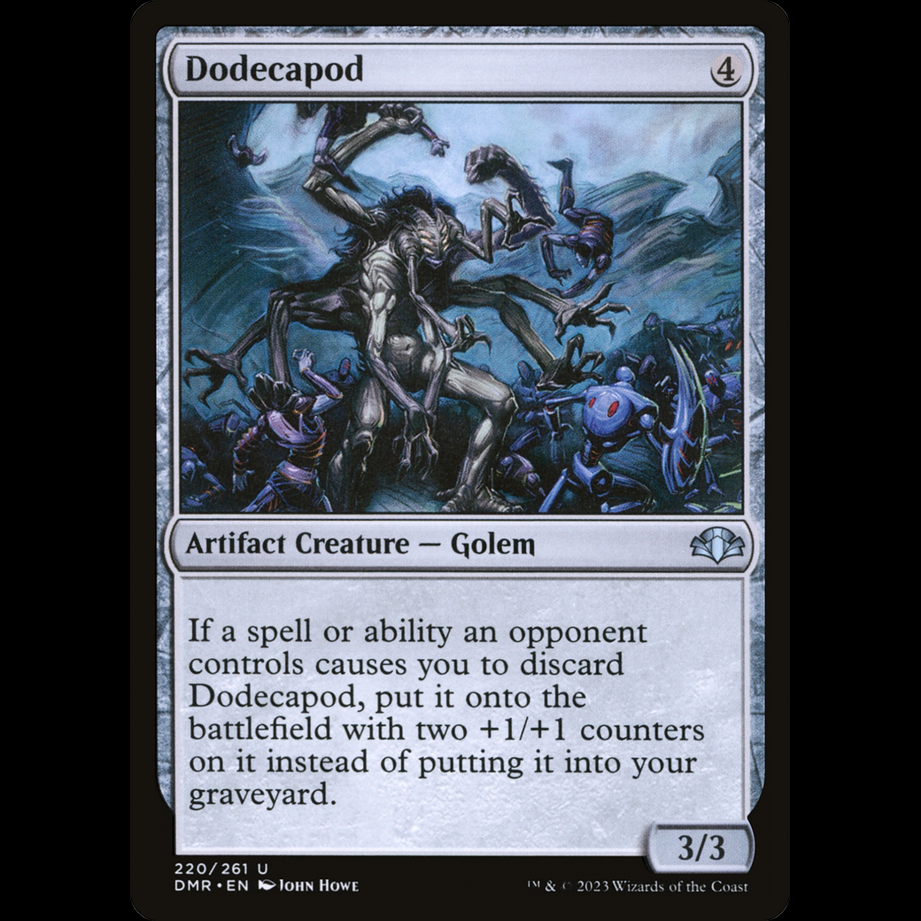If a spell or ability an opponent controls causes you to discard Dodecapod, put it onto the battlefield with two +1/+1 counters on it instead of putting it into your graveyard.