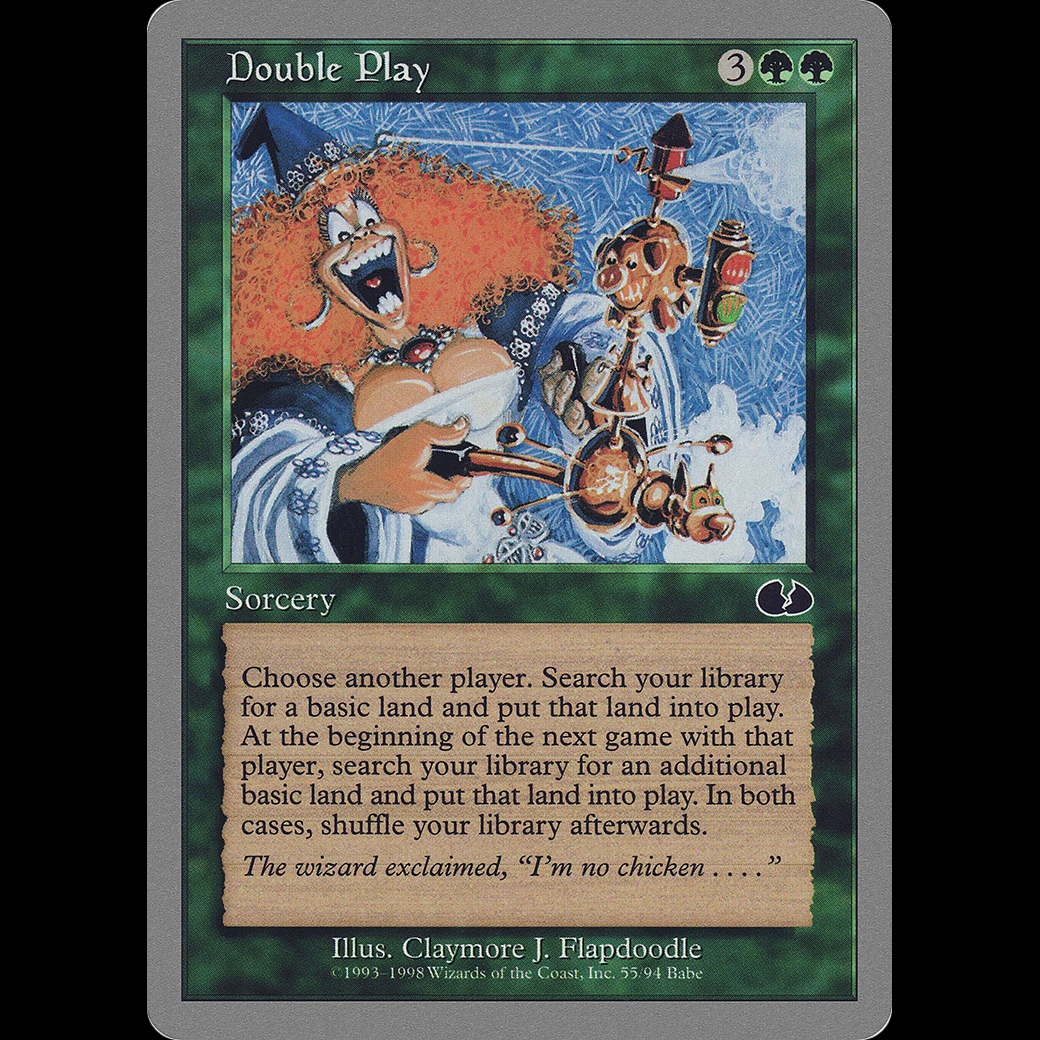 Choose another player. Search your library for a basic land card, put it onto the battlefield, then shuffle. At the beginning of the first upkeep in your next game with that player, search your library for a basic land card, put it onto the battlefield, then shuffle.
