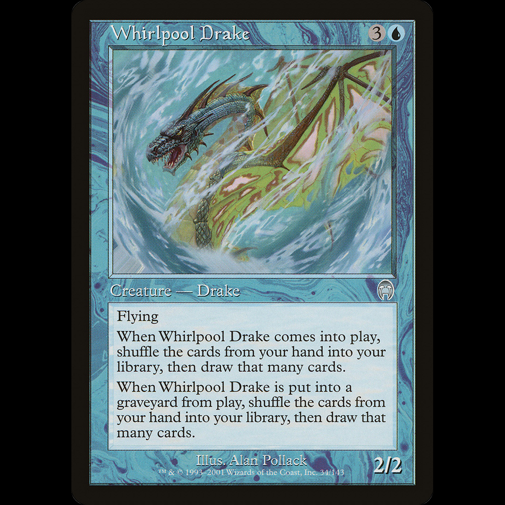 When Whirlpool Drake dies, shuffle the cards from your hand into your library, then draw that many cards.