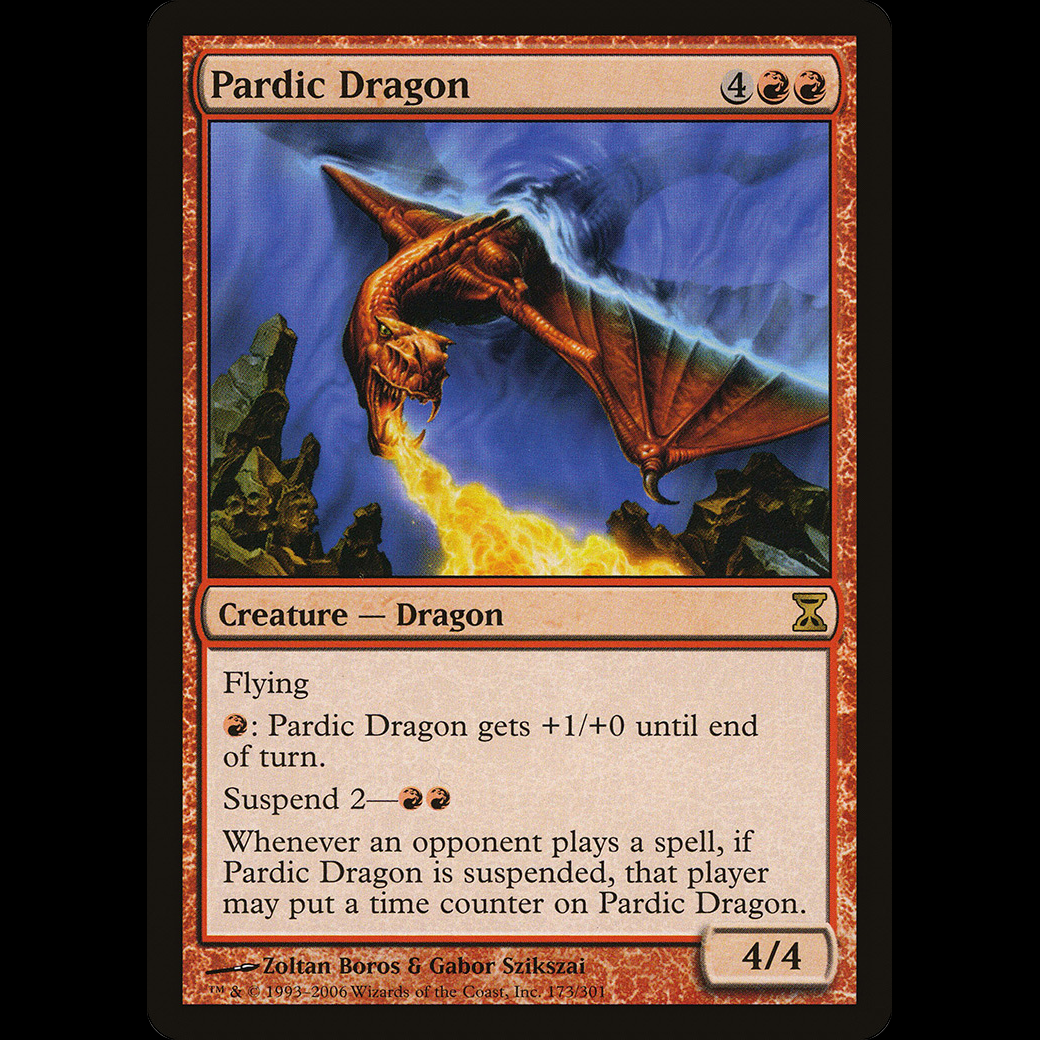 Whenever an opponent casts a spell, if Pardic Dragon is suspended, that player may put a time counter on Pardic Dragon.