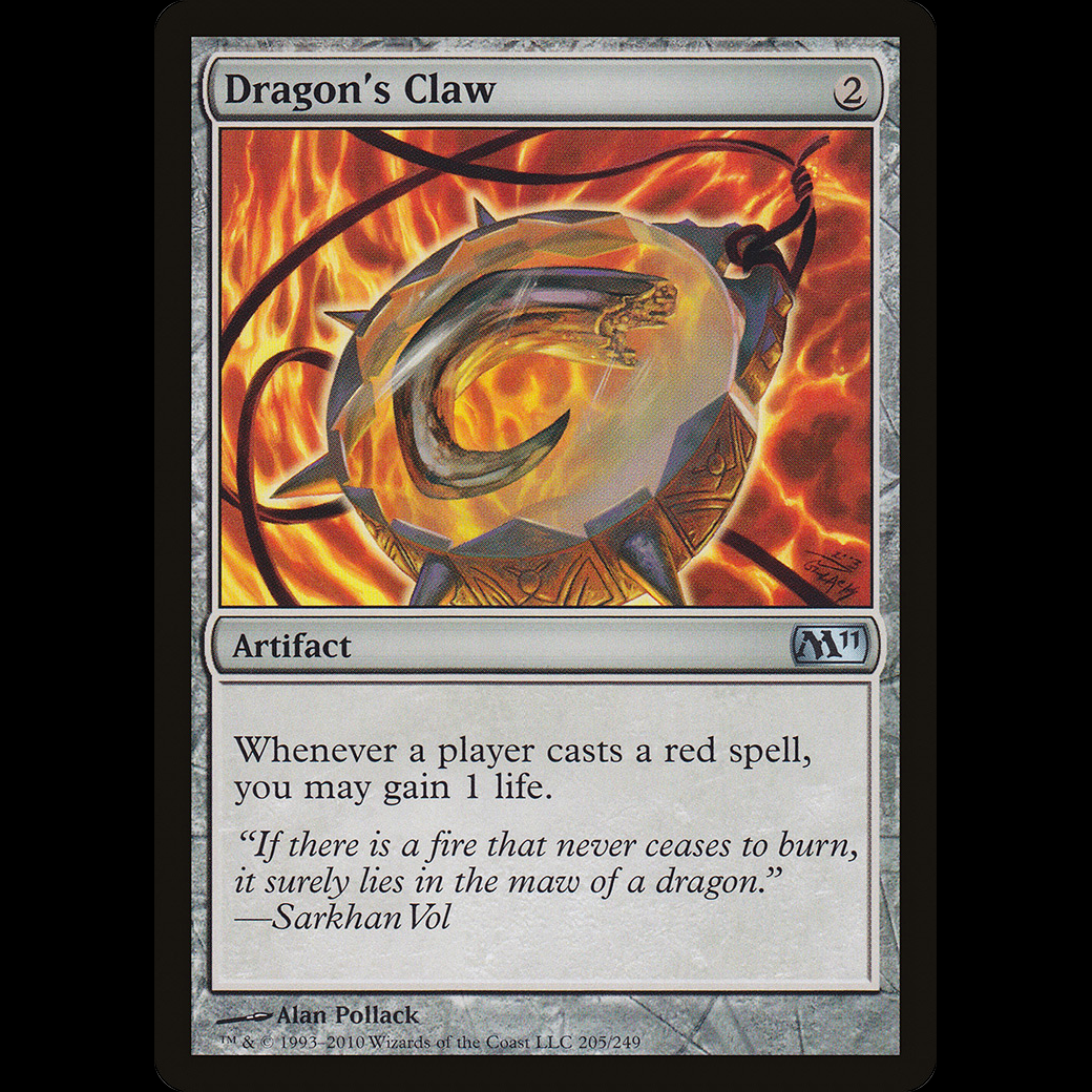 MTG Dragon's Claw Magic 2011Whenever a player casts a red spell, you may gain 1 life.