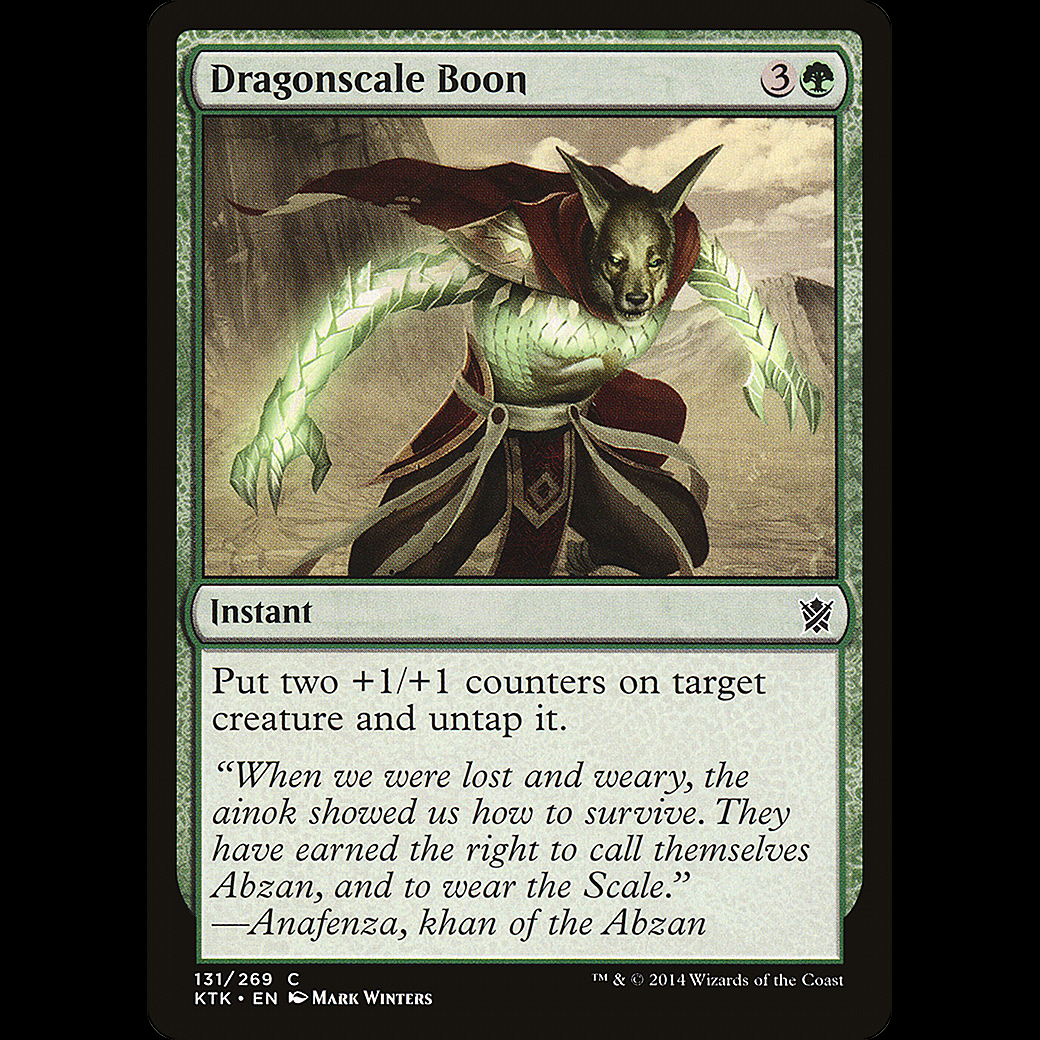 MTG Dragonscale Boon Khans of TarkirPut two +1/+1 counters on target creature and untap it.