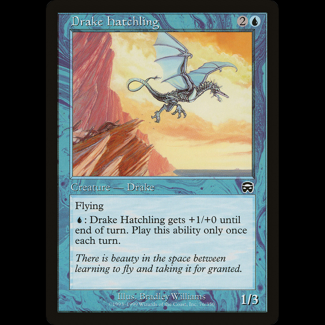 : Drake Hatchling gets +1/+0 until end of turn. Activate only once each turn.