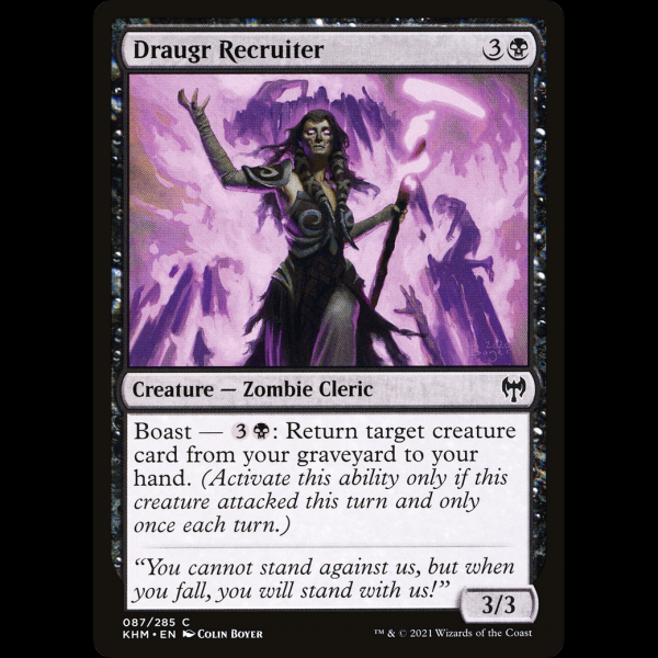 Boast — : Return target creature card from your graveyard to your hand. (Activate only if this creature attacked this turn and only once each turn.)