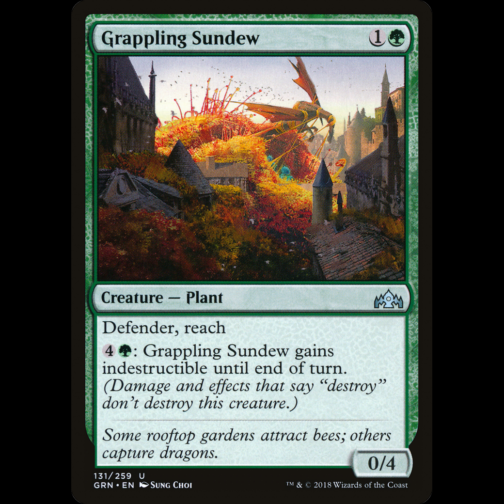 : Grappling Sundew gains indestructible until end of turn. (Damage and effects that say "destroy" don't destroy this creature.)