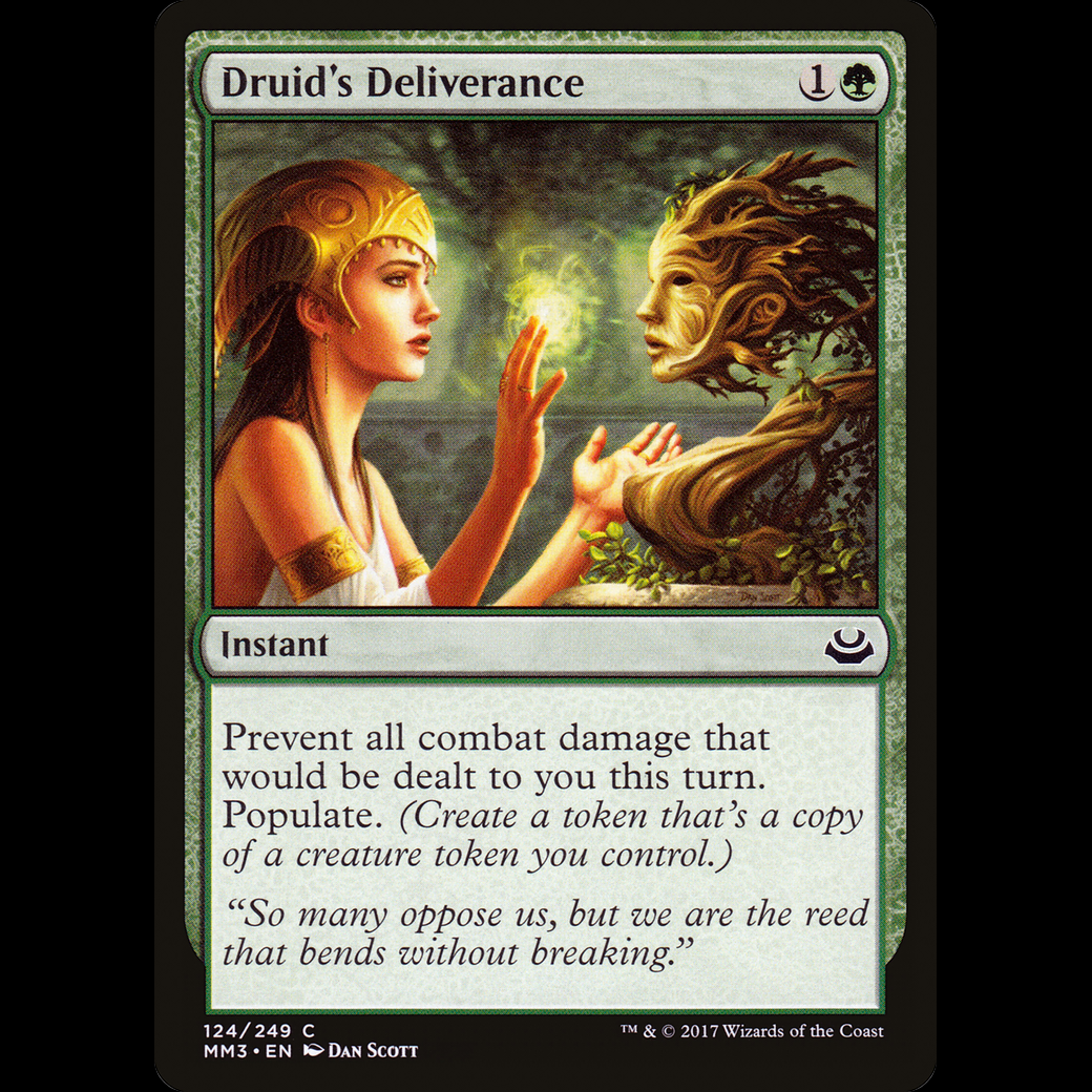 Prevent all combat damage that would be dealt to you this turn. Populate. (Create a token that's a copy of a creature token you control.)
