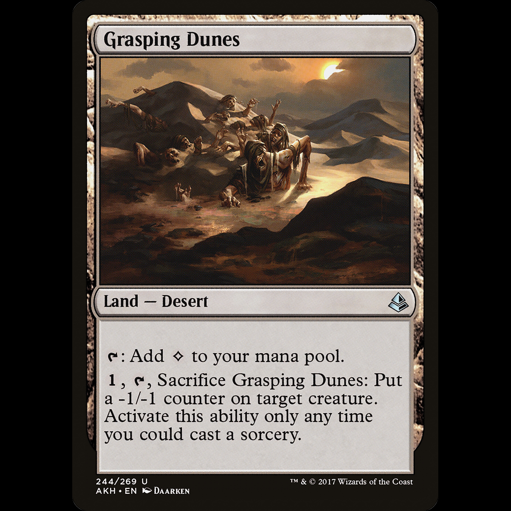 , , Sacrifice Grasping Dunes: Put a -1/-1 counter on target creature. Activate only as a sorcery.