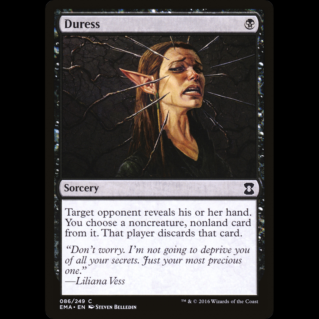 Target opponent reveals their hand. You choose a noncreature, nonland card from it. That player discards that card.