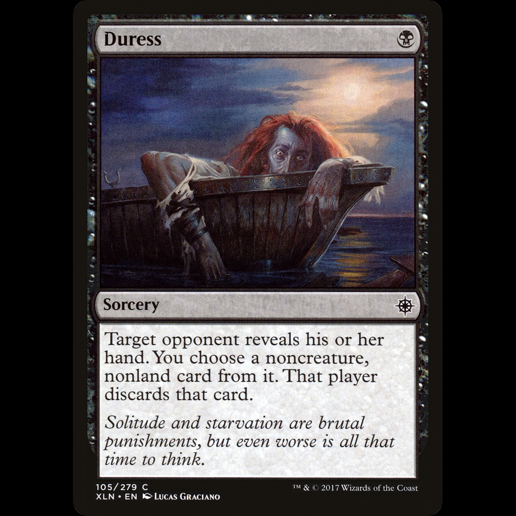 Target opponent reveals their hand. You choose a noncreature, nonland card from it. That player discards that card.