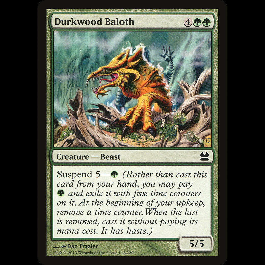 Suspend 5— (Rather than cast this card from your hand, you may pay and exile it with five time counters on it. At the beginning of your upkeep, remove a time counter. When the last is removed, cast it without paying its mana cost. It has haste.)