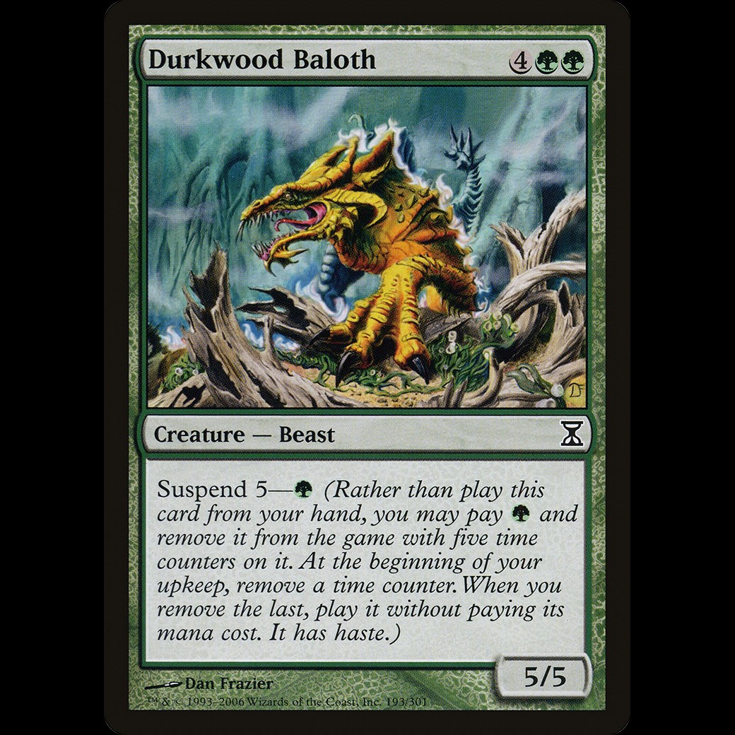 Suspend 5— (Rather than cast this card from your hand, you may pay and exile it with five time counters on it. At the beginning of your upkeep, remove a time counter. When the last is removed, cast it without paying its mana cost. It has haste.)