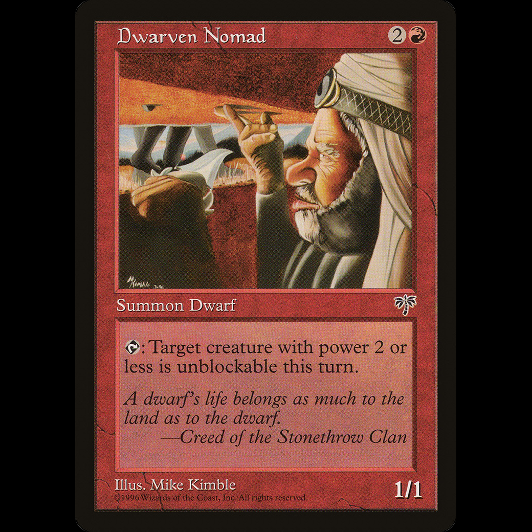 MTG Dwarven Nomad Mirage mir#170: Target creature with power 2 or less can't be blocked this turn.