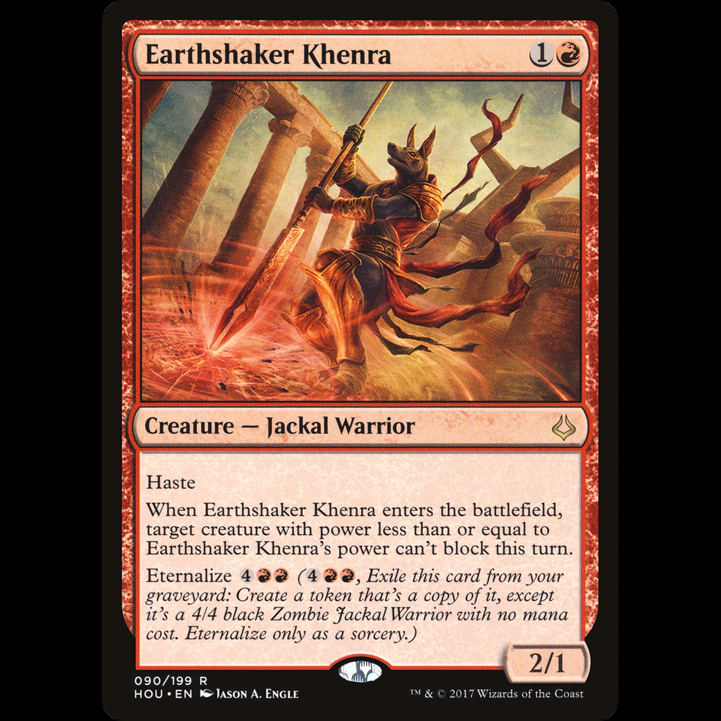 When Earthshaker Khenra enters the battlefield, target creature with power less than or equal to Earthshaker Khenra's power can't block this turn.