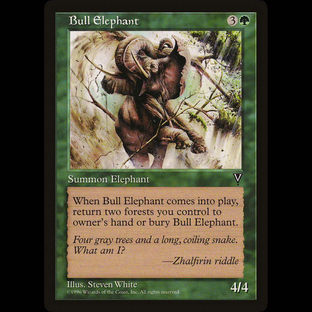 When Bull Elephant enters the battlefield, sacrifice it unless you return two Forests you control to their owner's hand.