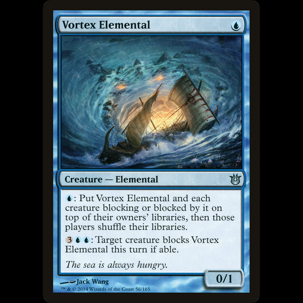 : Put Vortex Elemental and each creature blocking or blocked by it on top of their owners' libraries, then those players shuffle.