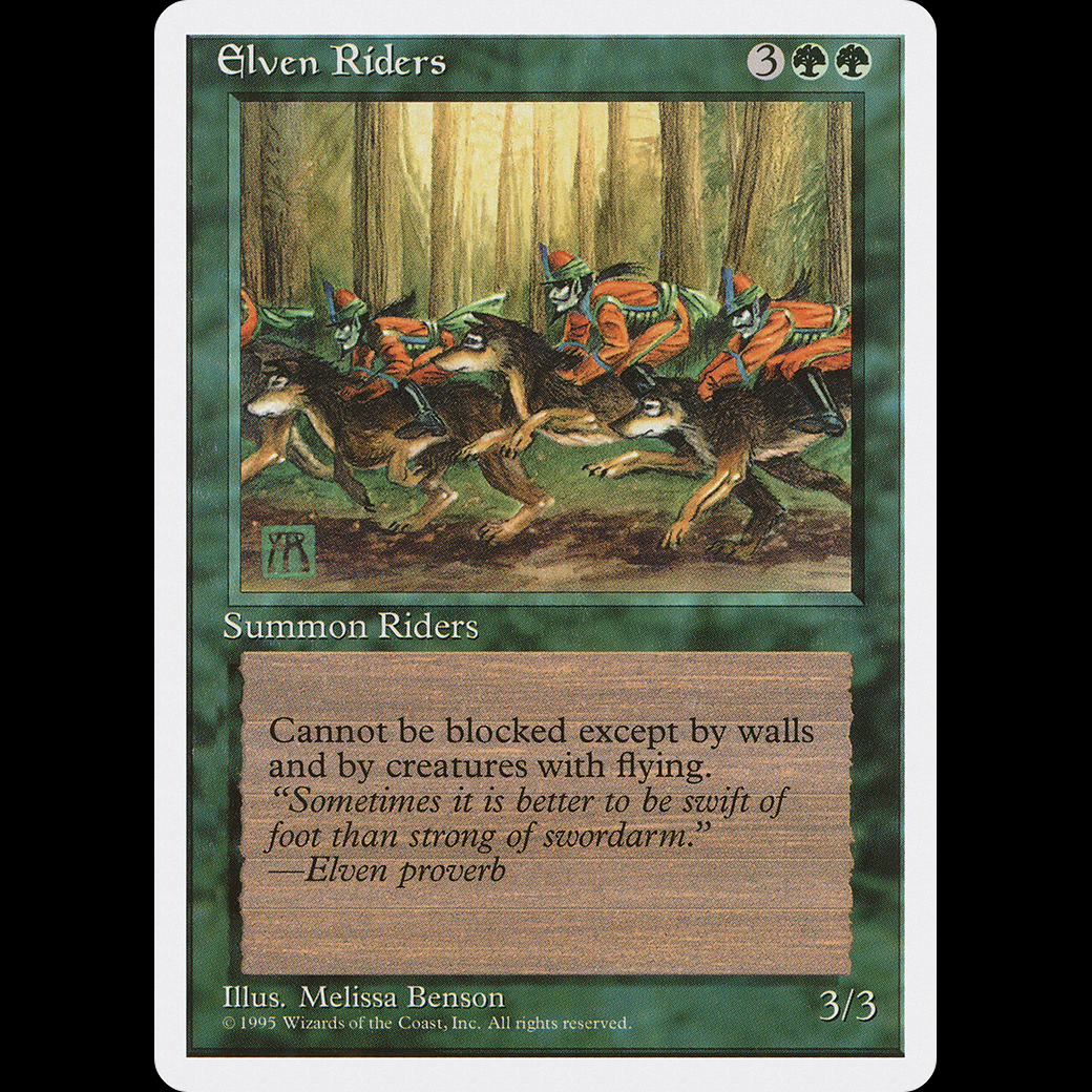 Elven Riders can't be blocked except by Walls and/or creatures with flying.