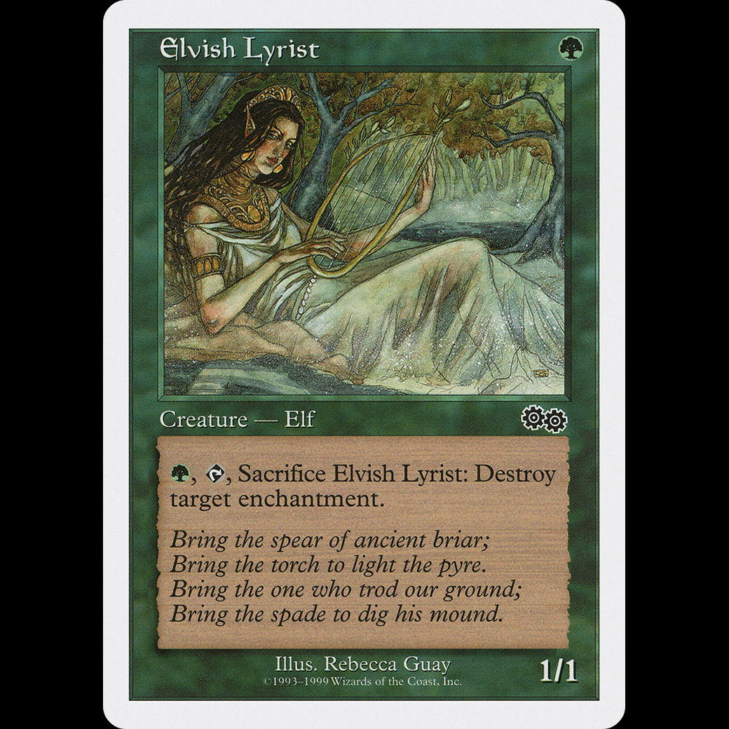 , , Sacrifice Elvish Lyrist: Destroy target enchantment.