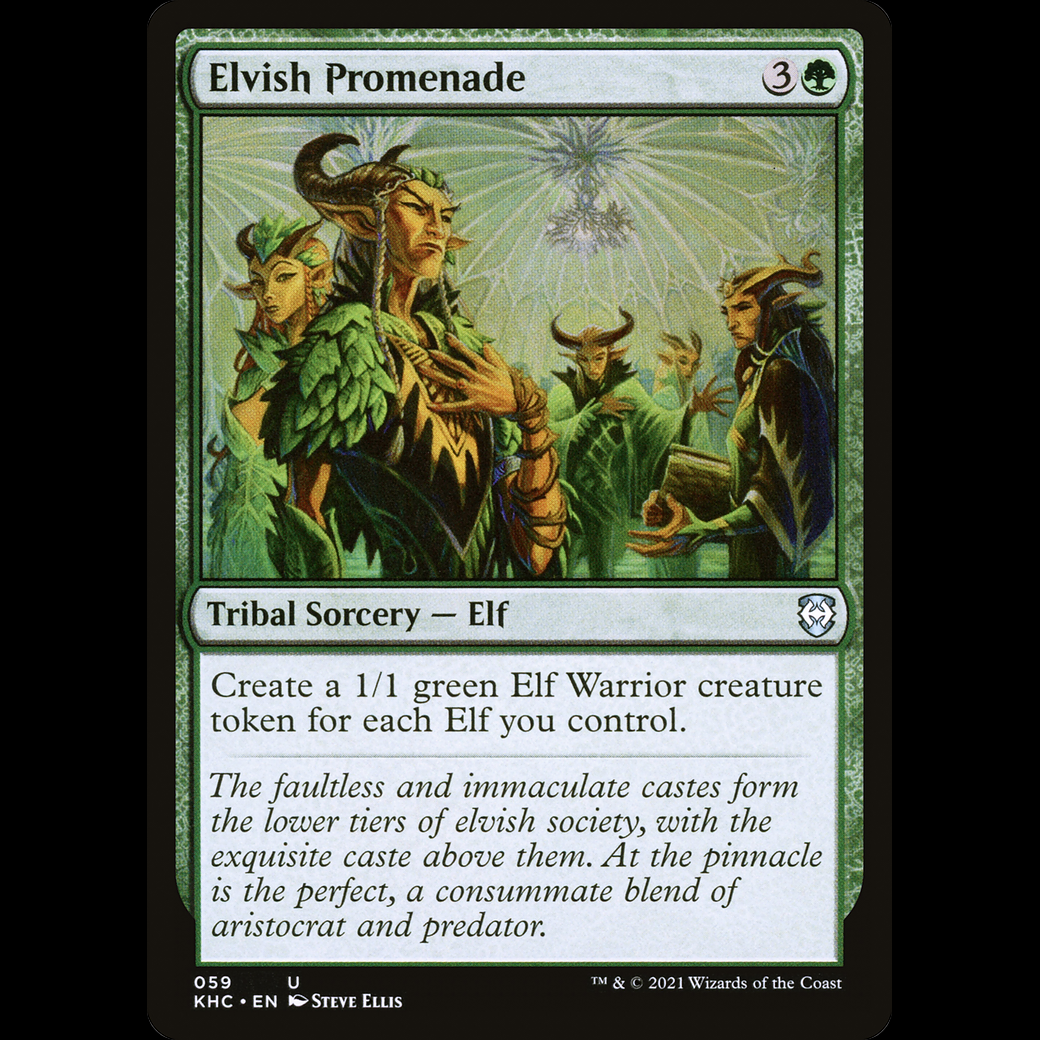 Create a 1/1 green Elf Warrior creature token for each Elf you control.