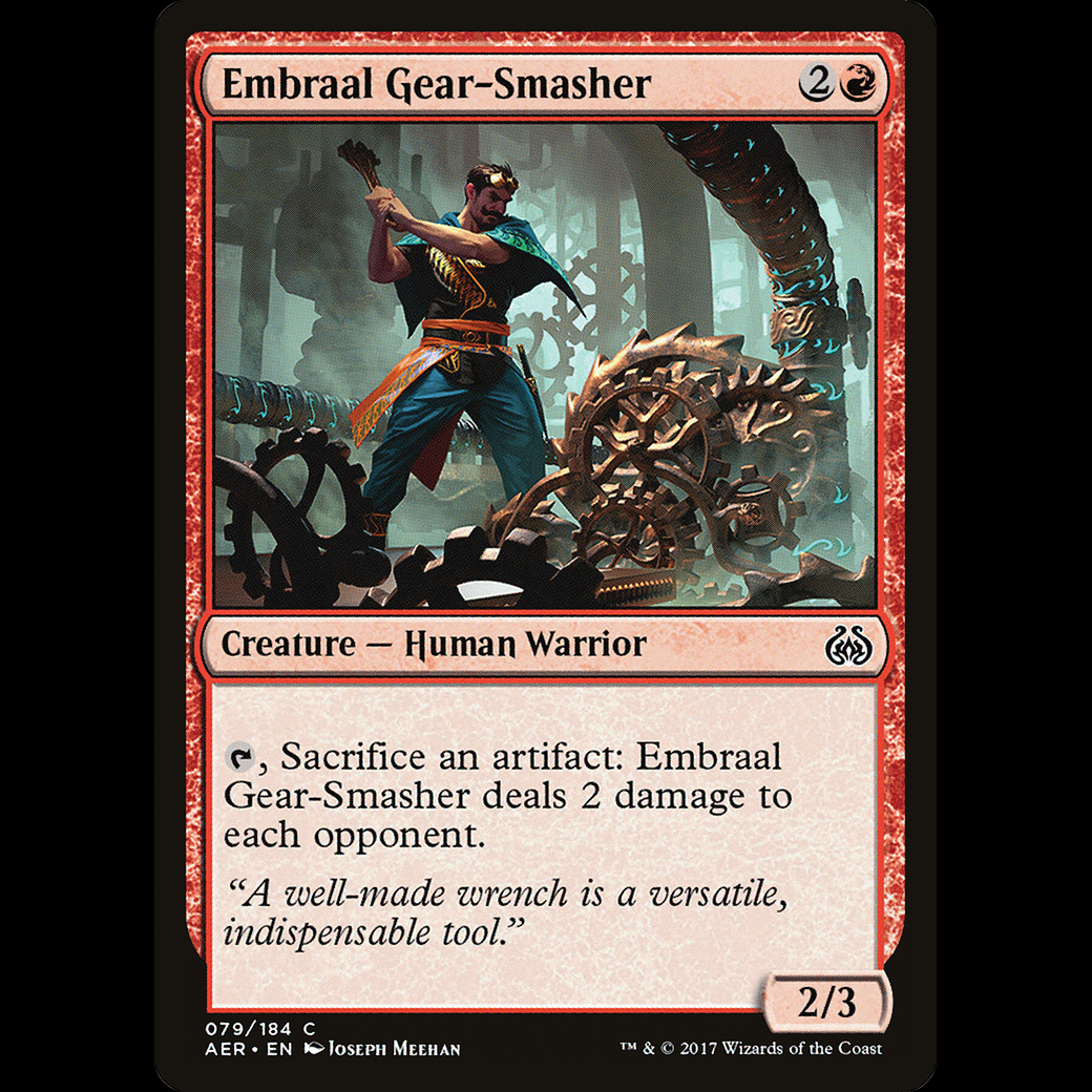 , Sacrifice an artifact: Embraal Gear-Smasher deals 2 damage to each opponent.