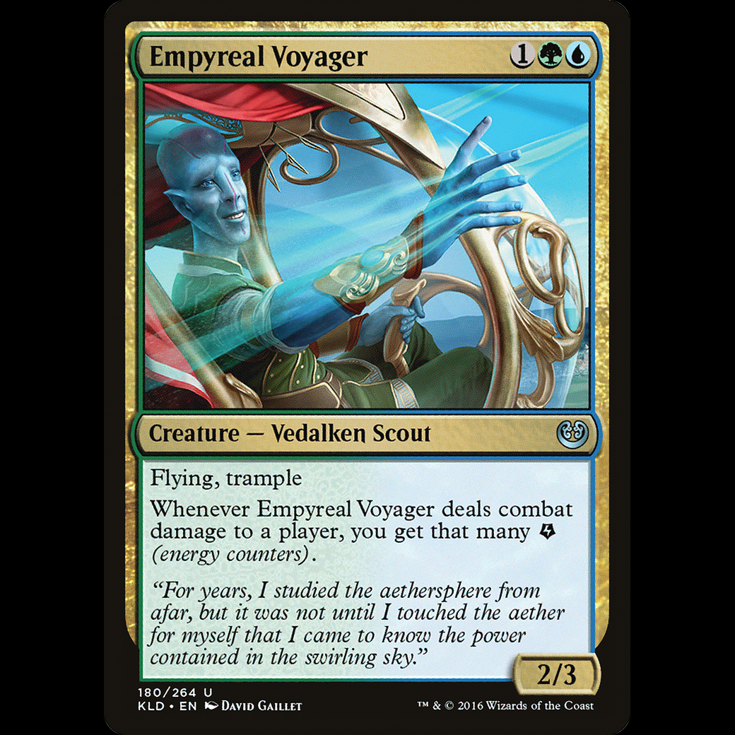 Whenever Empyreal Voyager deals combat damage to a player, you get that many (energy counters).