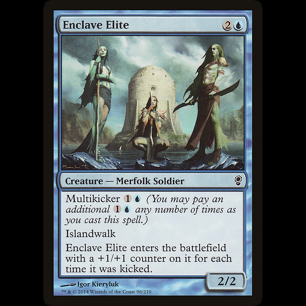 Enclave Elite enters the battlefield with a +1/+1 counter on it for each time it was kicked.