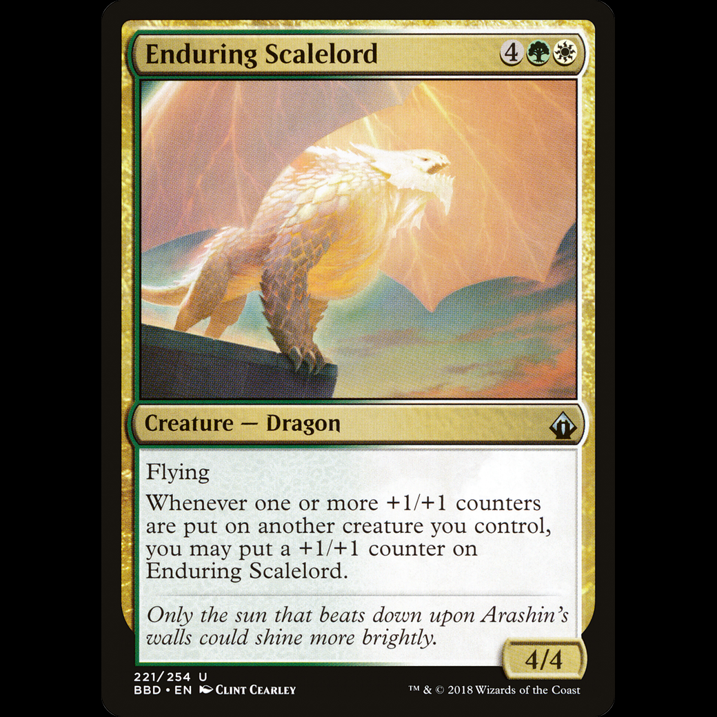Whenever one or more +1/+1 counters are put on another creature you control, you may put a +1/+1 counter on Enduring Scalelord.