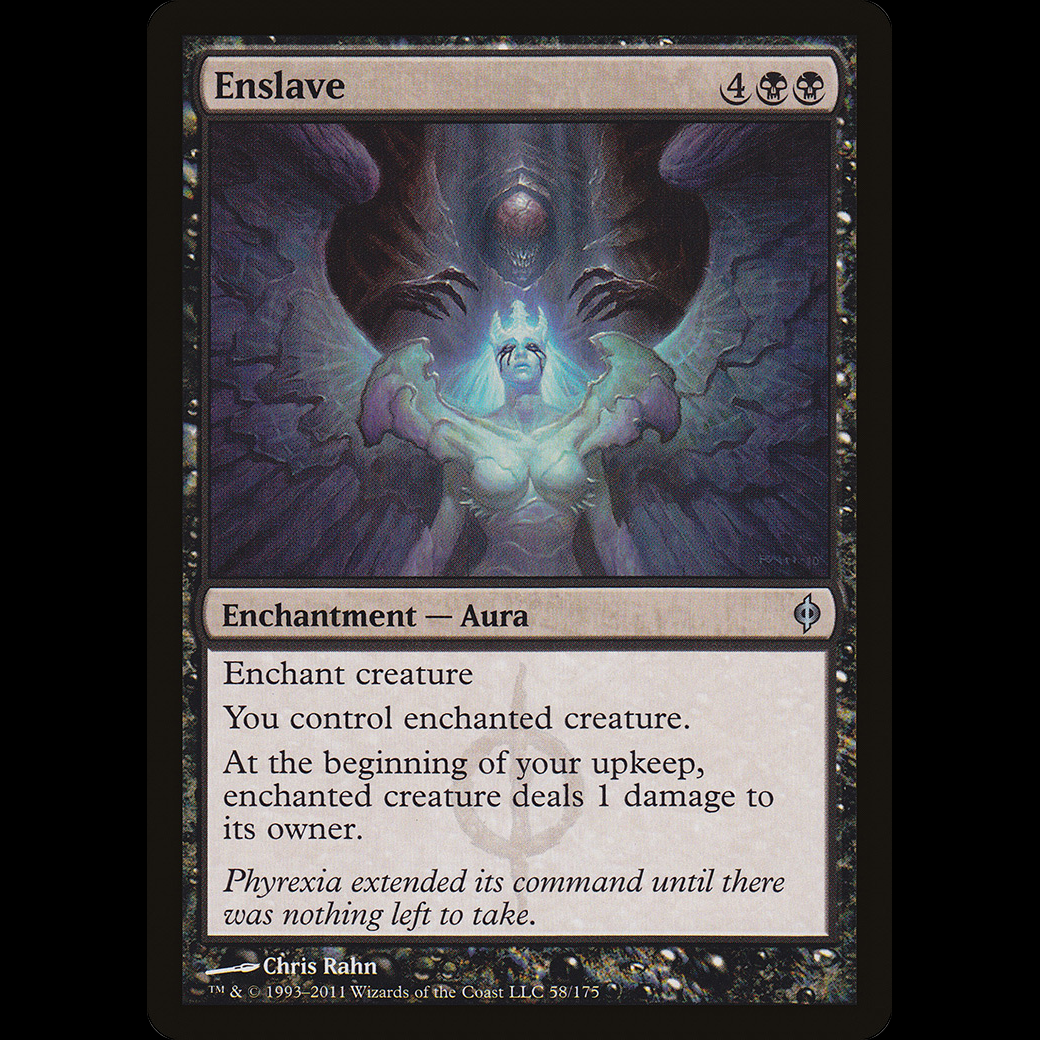 At the beginning of your upkeep, enchanted creature deals 1 damage to its owner.