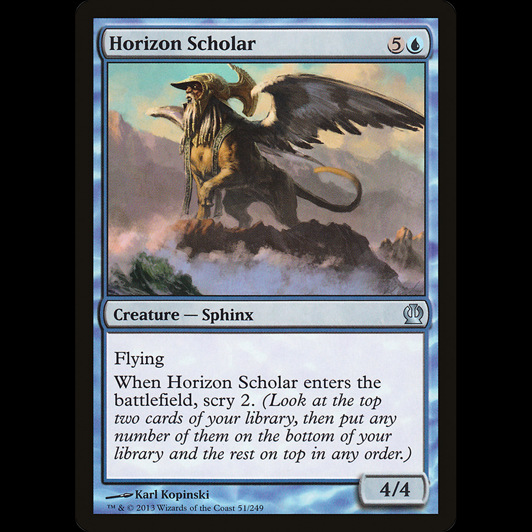 When Horizon Scholar enters the battlefield, scry 2. (Look at the top two cards of your library, then put any number of them on the bottom of your library and the rest on top in any order.)
