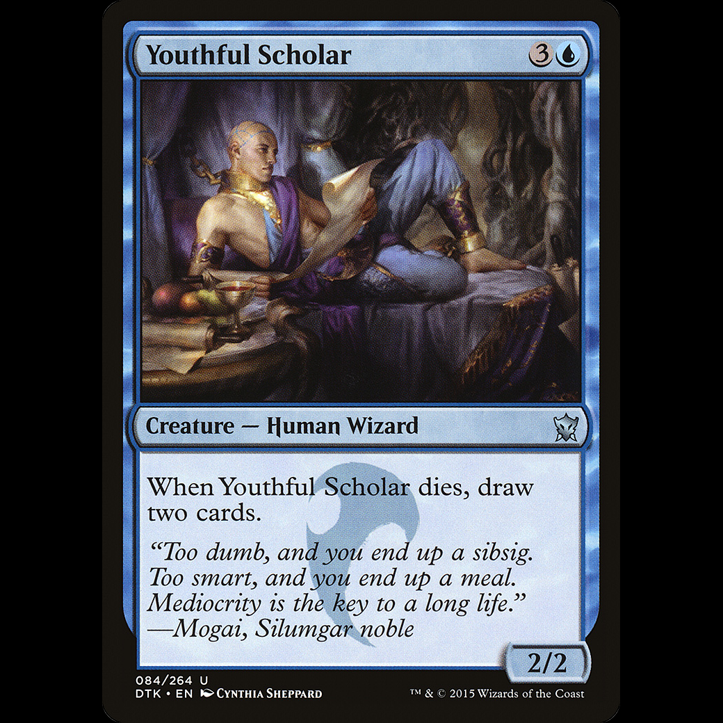 MTG Erudito joven (Youthful Scholar) Dragons of TarkirWhen Youthful Scholar dies, draw two cards.