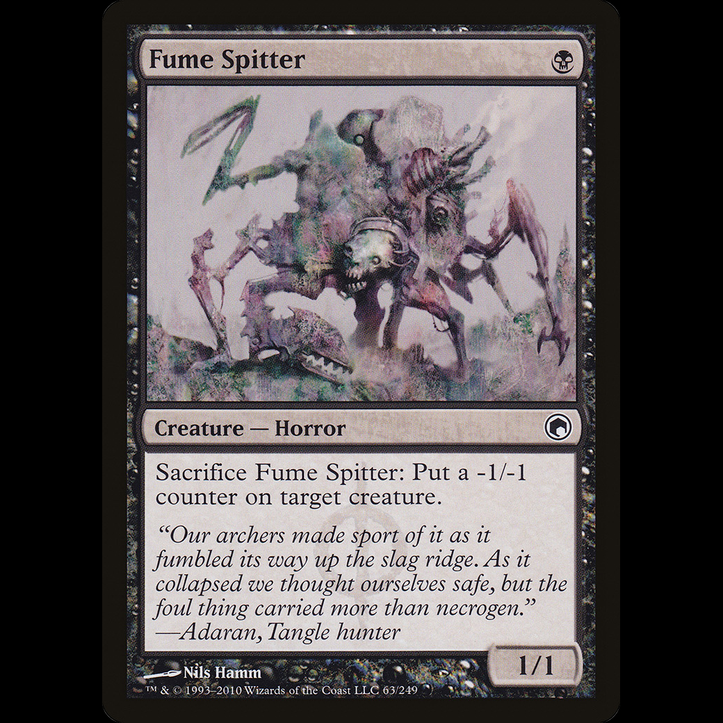 Sacrifice Fume Spitter: Put a -1/-1 counter on target creature.
