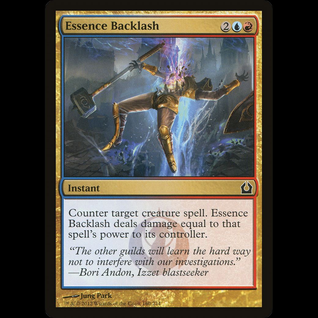 Counter target creature spell. Essence Backlash deals damage equal to that spell's power to its controller.