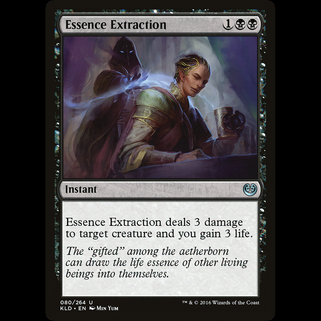 Essence Extraction deals 3 damage to target creature and you gain 3 life.