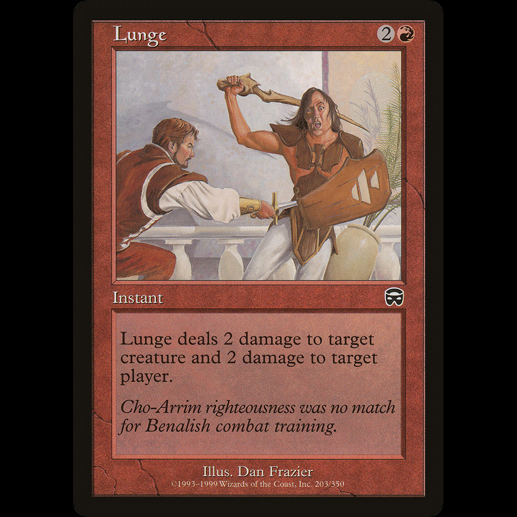 Lunge deals 2 damage to target creature and 2 damage to target player or planeswalker.