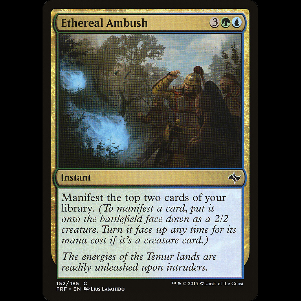 Manifest the top two cards of your library. (To manifest a card, put it onto the battlefield face down as a 2/2 creature. Turn it face up any time for its mana cost if it's a creature card.)