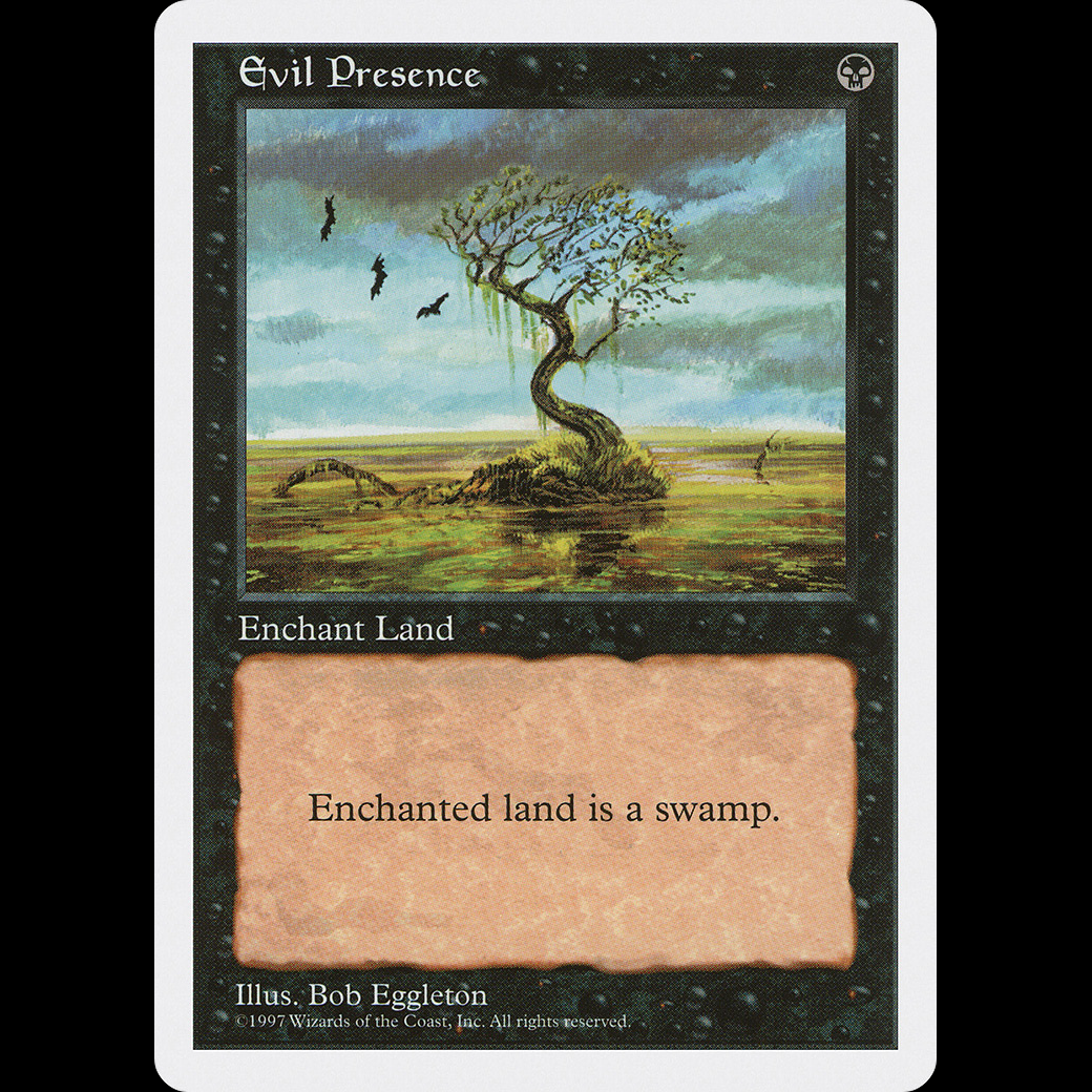 MTG Evil Presence Fifth EditionEnchant land Enchanted land is a Swamp.