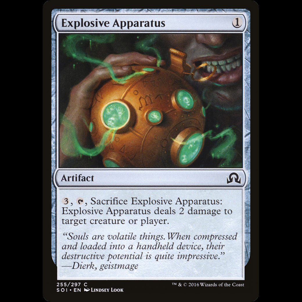 , , Sacrifice Explosive Apparatus: It deals 2 damage to any target.