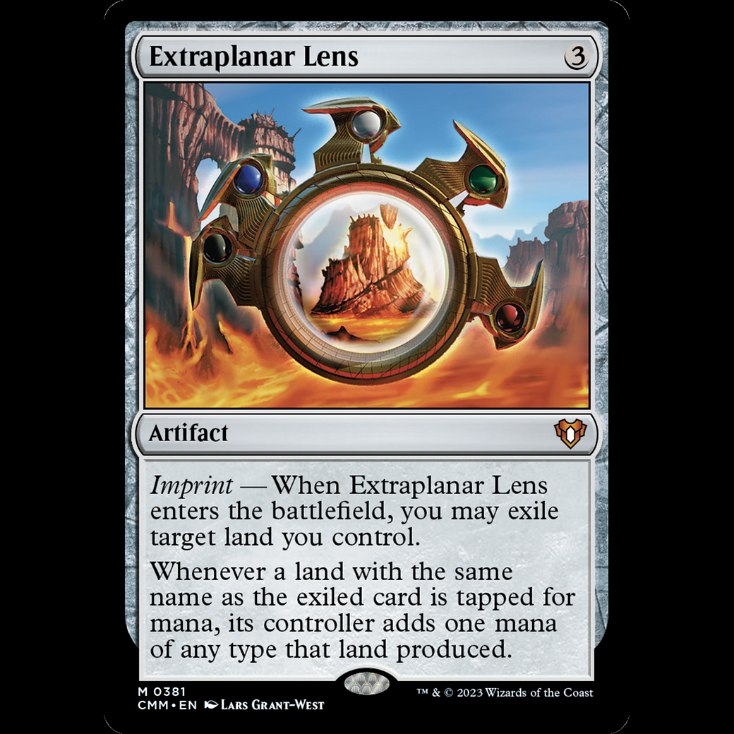 Whenever a land with the same name as the exiled card is tapped for mana, its controller adds one mana of any type that land produced.