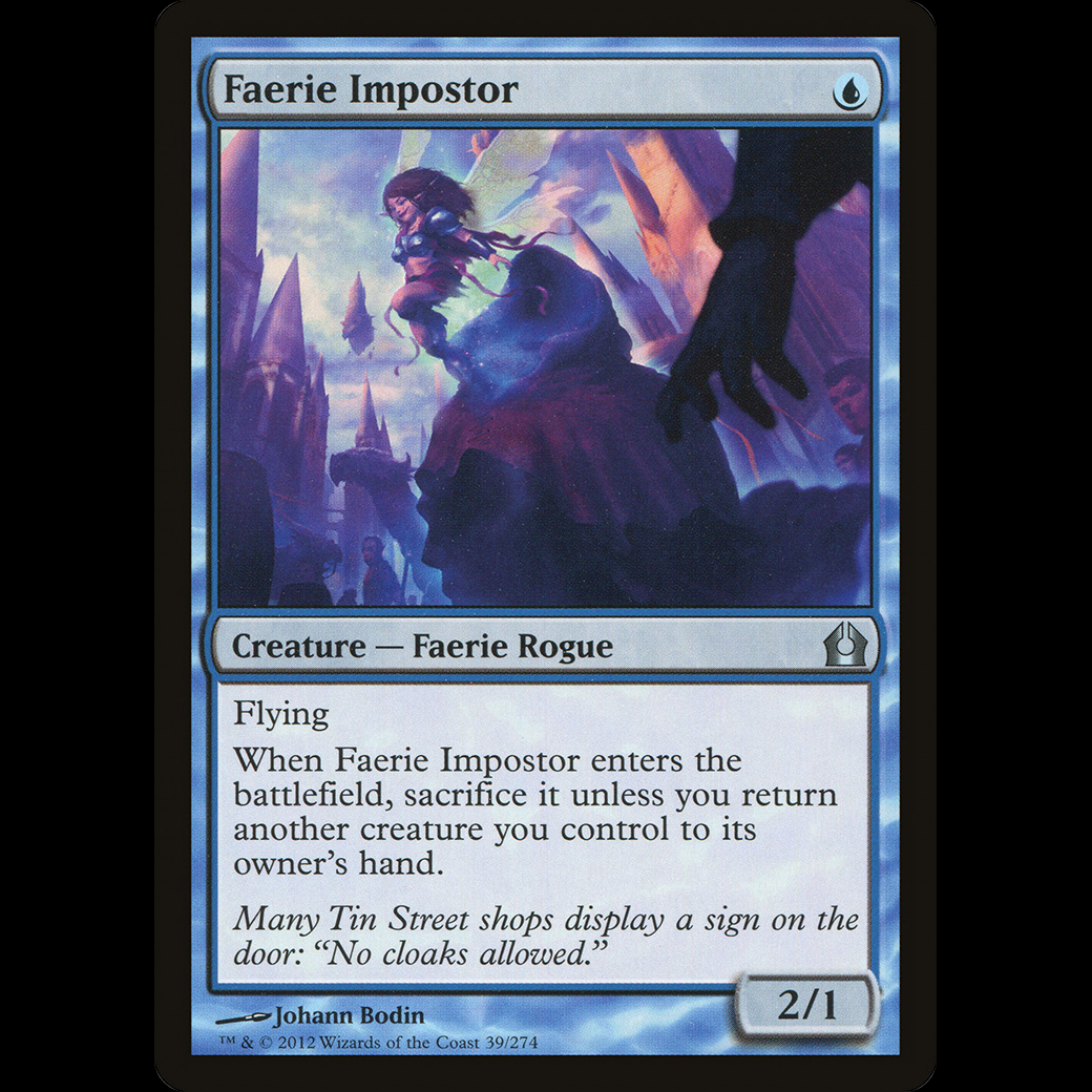 When Faerie Impostor enters the battlefield, sacrifice it unless you return another creature you control to its owner's hand.